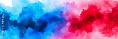 An abstract watercolor background with a vibrant red and blue ombre effect, perfect for celebrating the 4th of July. This image evokes patriotism, freedom, and celebration. It can be used for various