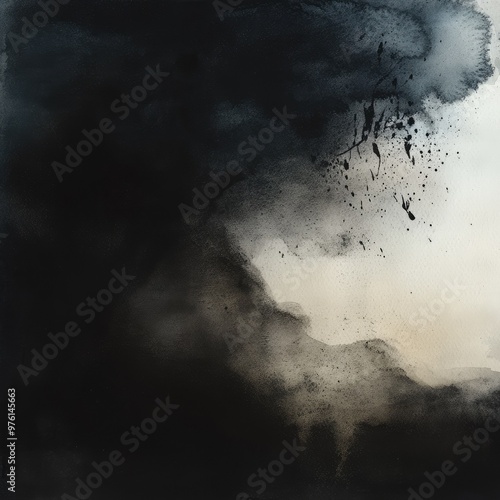An abstract watercolor painting with dark and light tones, creating a sense of depth and emotion through vivid brushstrokes.