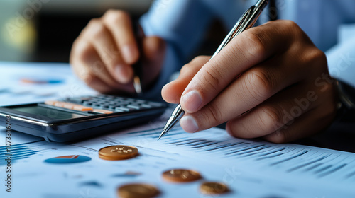 An accountant looks at a financial report, professional accounting company, digital marketing, optimization, guy calculating a sales margin, a man, presumably a businessman, is analyzing documents