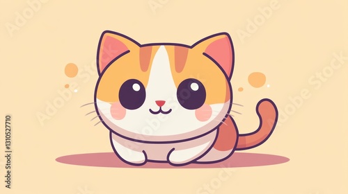 An adorable cartoon cat with big round eyes and cute smile