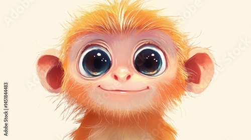 An adorable illustration of a baby monkey with large, expressive eyes.