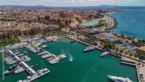 marina, boat, yacht, palma de majorca, city, urban, port, harbor, coastline, sea, ocean, water, building, rooftop, aerial view, sunny, clear sky, blue skies, mediterranean, island, travel, tour tourism, destination, landmark, europa, infrastructure, development, waterfront, coastal, resort, leisure, recreation, sailing, historic, city landscape, panoramic, scenic, natural beauty, architecture, transport, landscape, panorama, summer, yacht, aerial