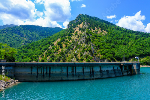 An arch dam in the Karditsa regional union of Greece, which flows into the Tavropos River, forming the artificial Lake Plastiras.