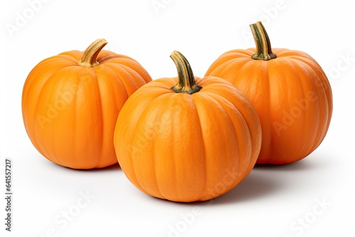 An arrangement of three pumpkins isolated on white with shadows clipping path included