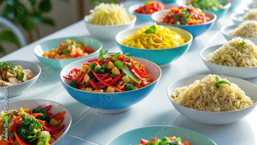 colourful, salad, dish, bowl, white, table, vibrant, fresh, healthy, cookery, meal, epicure, vegetarian, vegan, alimentary, variety, presentation, beautiful, appetising, seasonal, dining, food, culinary, wholesome, artful, natural, organic, rustic, modern, elegant, plated