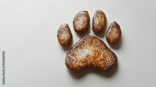 An artistic paw print in earthy textures rests on a clean white background
