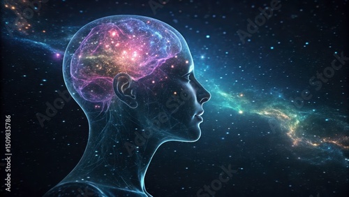 mind, brain, cosmos, galaxy, universe, space, nebula, star, thought, consciousness, cognition, idea, creativity, innovation, imagination, concept, science, psychology, mental health, abstract, aethereal, digital artwork, surreal, profile
