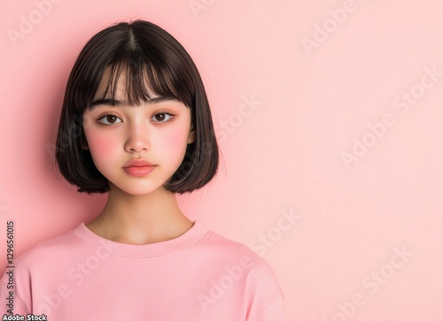 pink, asian girl, asian woman, pastel, girl, woman, asian, short hair, short hair, beautiful, beauty, face, korean, casual attire, attire, colourful, skin, colours, japanese, cool, model, copy, v, space, shape, cosmetic, skincare, cute, eyeshadow, care, facial, fashion, health, body, female, background, surgery, portrait, laser, make-up, white, eye, hand, hair, pretty