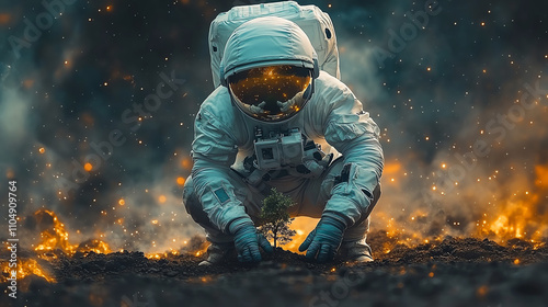 An astronaut explores an extraterrestrial landscape, showcasing innovation and discovery.