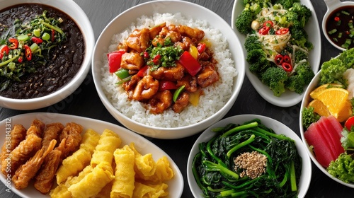 food, salad, meal, meat, plate, dinner, vegetable, dish, fish, cookery, rice, healthy, vegetable, lunch, beef, fresh, cooked, grilled, steak, vegetarian, tomatoes, chicken, seafood, epicure, lettuce, salmon, fried, white, fillet, roasted, diet