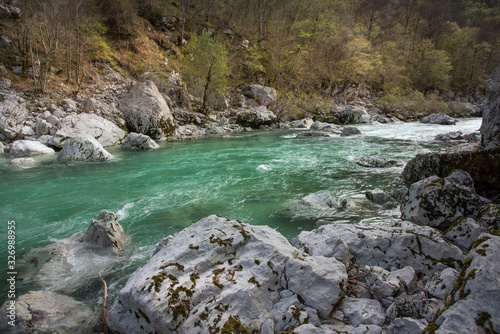soca, slovenia, alpen, mountain, mount, flux, nature, countryside, water, forest, shore