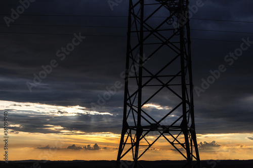 an Electricity pylon in front of an evening sky
