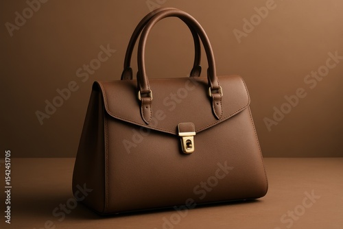 An elegant brown leather handbag with golden accents, a stylish and luxurious accessory, perfect for sophisticated fashion and everyday use, studio shot.