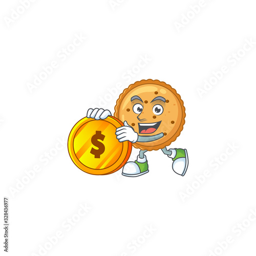 an elegant peanut butter cookies mascot cartoon design with gold coin