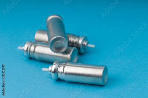 an empty cartridge of the Asthma inhaler on blue background