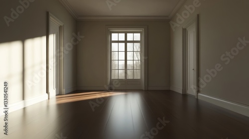 An empty room shown in a 3D image.