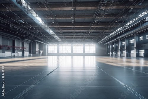 generative, ai, warehouse, empty, natural light, window, roomy, industrial, commercial, building, architecture, interior, construction, renovation
