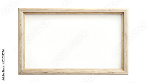 An empty wooden picture frame sits isolated on a white background