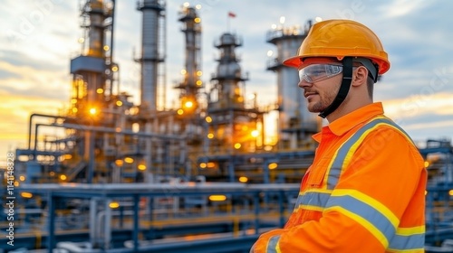 harmony, innovation, engineer, awareness, helmet, environmental, oil, safety, industrial, double, exposure, through, plant, merged