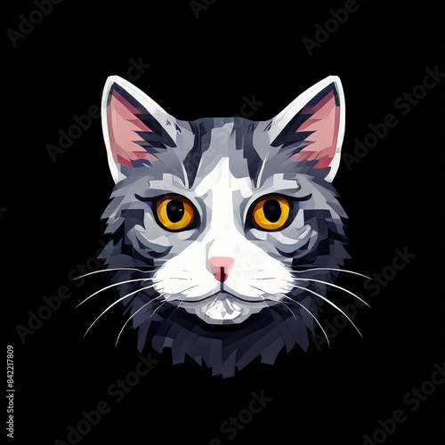 cat, felino, portrait, geometric, polygonal, abstract, digital artwork, fierce, intense, powerful, predator, mysterious, bold, stylised, graphic, futuristic, moody, dramatic, dark, animal, eye contact, striking