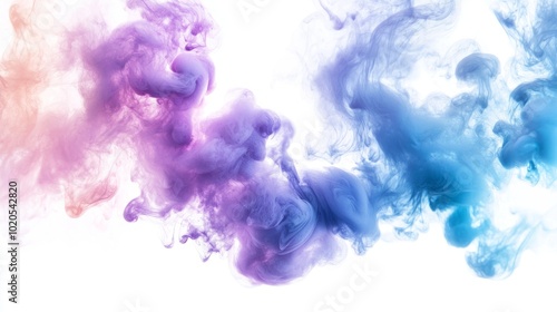 An ethereal ink cloud in water, blending beautiful hues of purple, blue, and pink, presented on a clean white background, perfect for artistic projects.