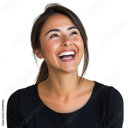 woman, hispanic, excited, laughing, ponytail, straight hair, 30, joy, happy, cheerful, positive, emotion, expression, smile, portrait, playful, carefree, fun, casual attire, happiness, lifestyle, relaxed, natural, joyful, missy, celebration, dynamic, energy, enthusiasm, vibrant, casual clothes, beautiful, energetic, joyfulness, blithe