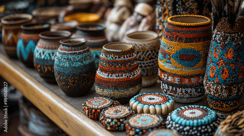 An exploration of Native American art, featuring intricate beadwork and pottery, highlighting cultural significance and creativity, Native American Day