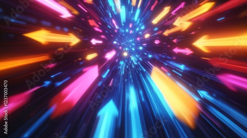An explosion of vibrant arrows in various colors, symbolizing direction, movement, and energy, creating a stunning visual perspective that captivates viewers instantly.