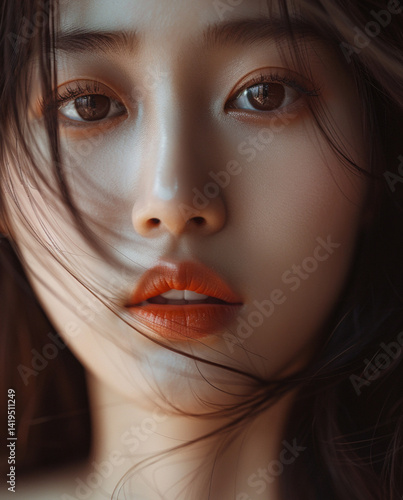korean, woman, aglow, fats, lip, gold, nose, bridge, almond, smooth, backlight, face, beauty, eye, hair, model, skin, fashion, brunette, make-up, person, closeup, glamour, people, eye, smile, 1, look, closeup, looking, black, expression, smiling, brown
