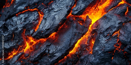 an igneous rock?s crystalline texture, with interlocking mineral grains capturing the cooling process of molten lava