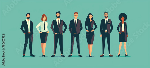 An illustration banner image of diverse group of business people standing in line flat design with a green background.