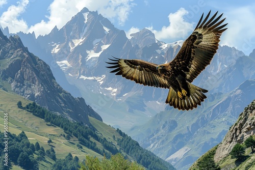 An image of a majestic golden eagle soaring high above the Pyrenees mountains