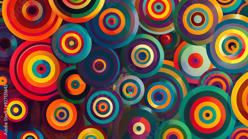 an image of many colorful circles, some with stripes and some with a center design.