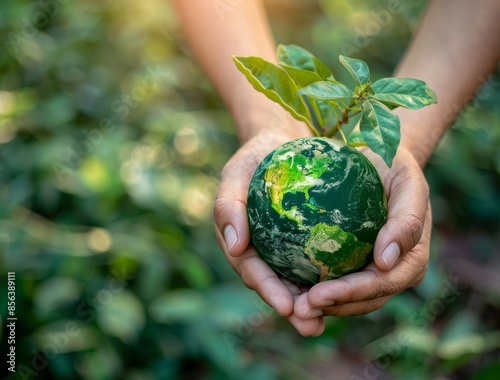 An image of the green planet in your hands - a concept relating to the environment in the United States