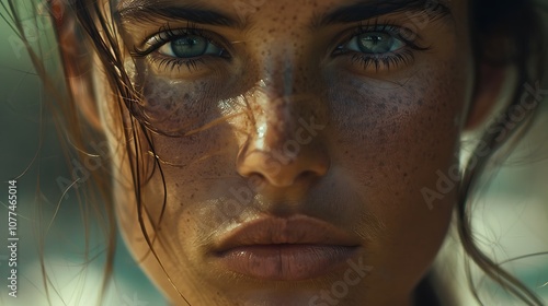 An image that shows natural beauty, with no or minimal makeup, highlighting skin texture and genuine expression. This can be in a natural environment, such as outdoors, so that the natural light highl