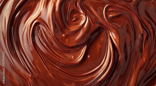 An incredibly mesmerizing closeup of beautifully melted chocolate, showcasing a rich and glossy swirl that evokes a sense of indulgence and warmth, making it perfect for enticing dessert themes