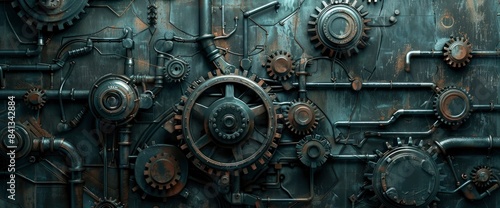 An Industrial-Themed Background With Metallic Textures, Gears, And Pipes Intertwined In A Complex Pattern
