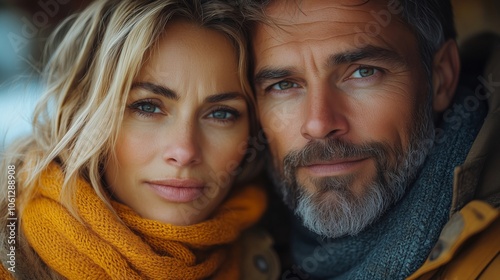 An Intimate Portrait of a Happy Couple Embracing in Winter