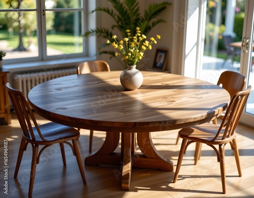 dining, meal, table, furniture, wooden, chair, seating, decor, room, light, natural, symmetry, design, home, cosy, inviting, warmth, colours, flower, vase, picture, wall, flooring, aesthetic, style, ambience, rustic, casual attire, comfortable, entertaining, gathering, family, friends, interior, space, arrangement, simplicity, elegance, charme, visual, decoration, lifestyle, atmosphere, serenity, minimalism, beauty, tradition, life events, art