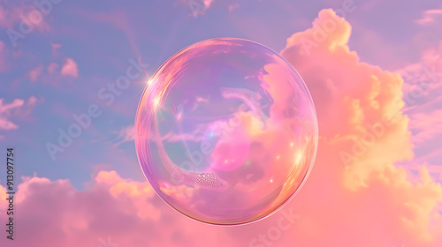 An iridescent soap bubble bursting with colorful patterns. Ephemeral beauty in design. Drifting through a twilight sky.