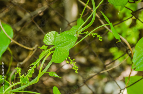 An ivy plant entangled in a wire fence