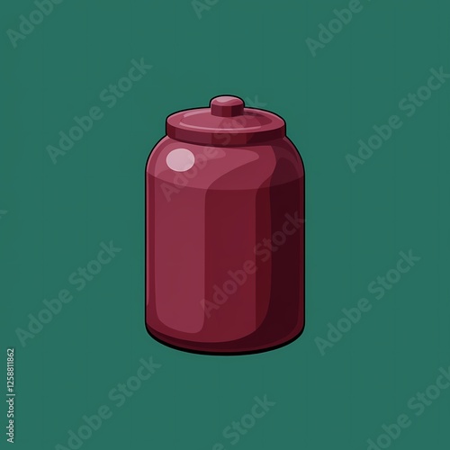 An minimalistic image of a maroon canister with a matte finish. The background is a forest green color, adding depth and contrast.