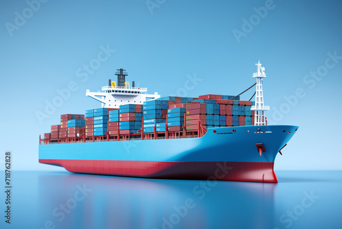 An ocean-going cargo ship full of containers. 3D render. Ai generate.