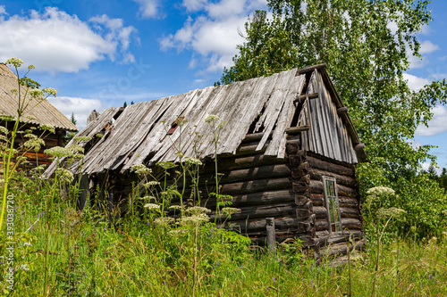 An old abandoned hut on the shore. Lake Tagasuk. Krasnoyarsk Territory, Siberia, Russia