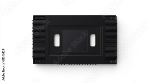 "An old black cinematic frame set against a white background, resembling vintage video or photo tape. This 3D realistic screen showcases a retro style,