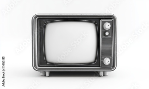 An old vintage retro tv television set with blank screen and isolated on a white background.