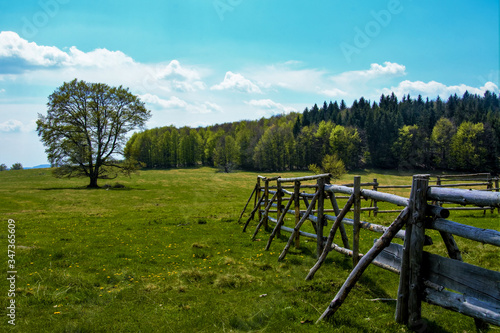 fence, landscape, grass, field, sky, nature, green, farm, countryside, tree, summer, rural, country, meadow, blue, wood, gate, view, cloud, tree, mountain, pasture, ranch, forest, wooden, farmland, vintage, travel, bright, britain, season, day, england, tranquil, prairie, rail, mountain, grazing, beauty, rustic, old