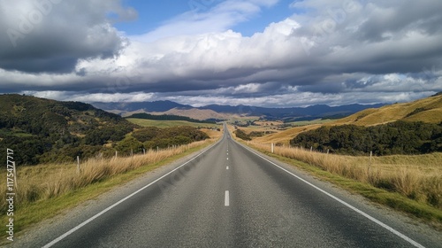 An open road stretching into the horizon with dramatic clouds above, inviting exploration and freedom