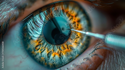 An operation process on an eye's pupil is captured in a macro photography, narrating a story of vision restoration through clinical intervention.