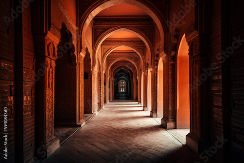 An orange corridor with arches 002